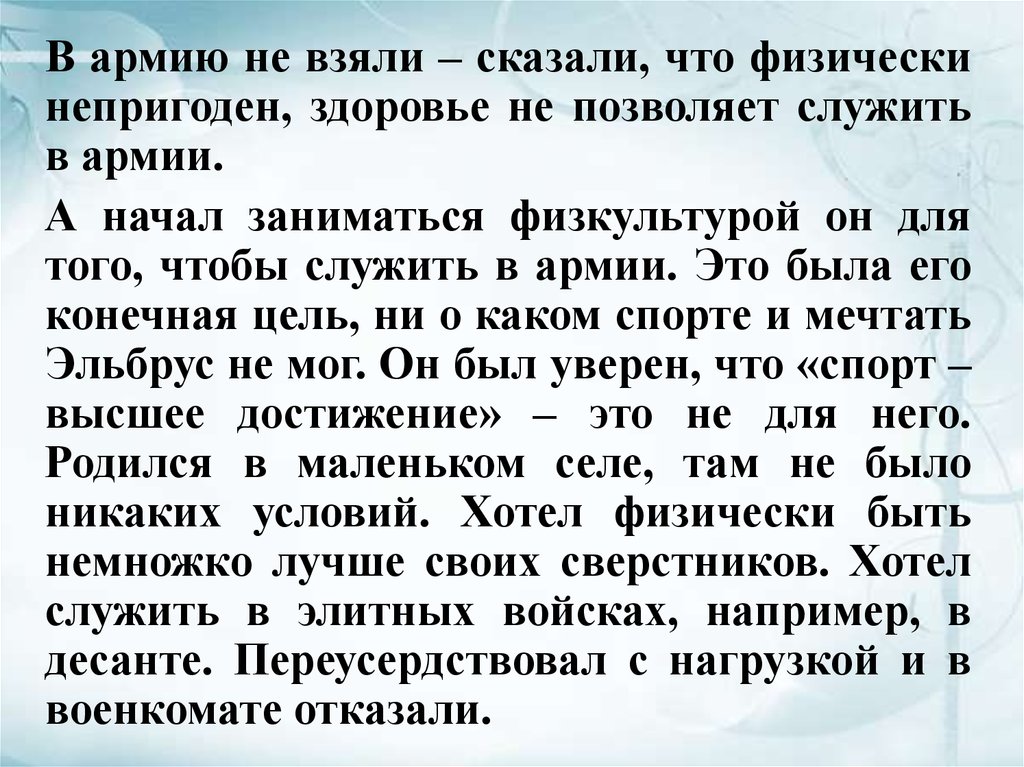 Тогда Эльбрус Нигматуллин поставилцель – стать мастером спорта. Этой