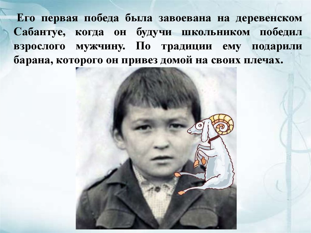 Его первая победа была завоевана на деревенскомСабантуе, когда он будучи школьником победил