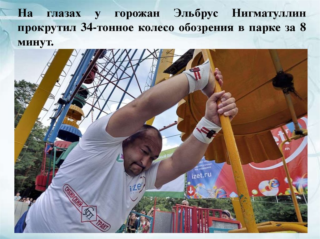 На глазах у горожан Эльбрус Нигматуллинпрокрутил 34-тонное колесо обозрения в парке за 8