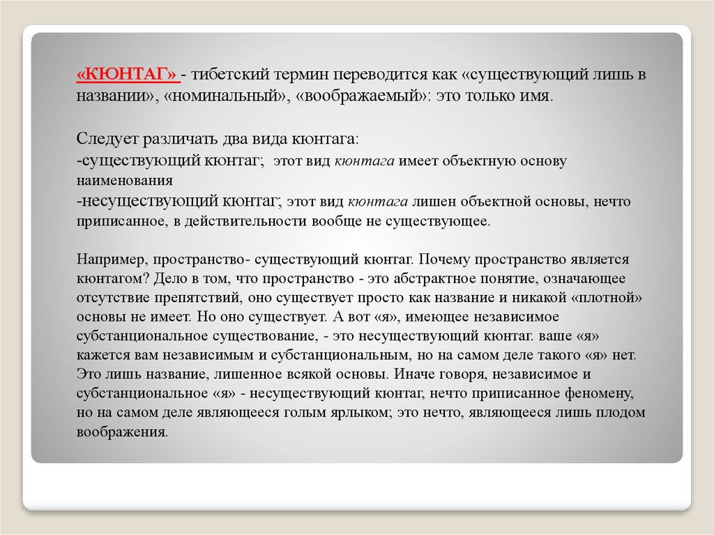 «КЮНТАГ» - тибетский термин переводится как «существующий лишь вназвании», «номинальный», «воображаемый»: это только имя.