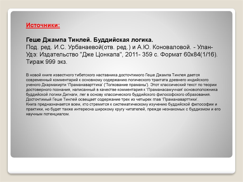 Источники:Геше Джампа Тинлей. Буддийская логика.