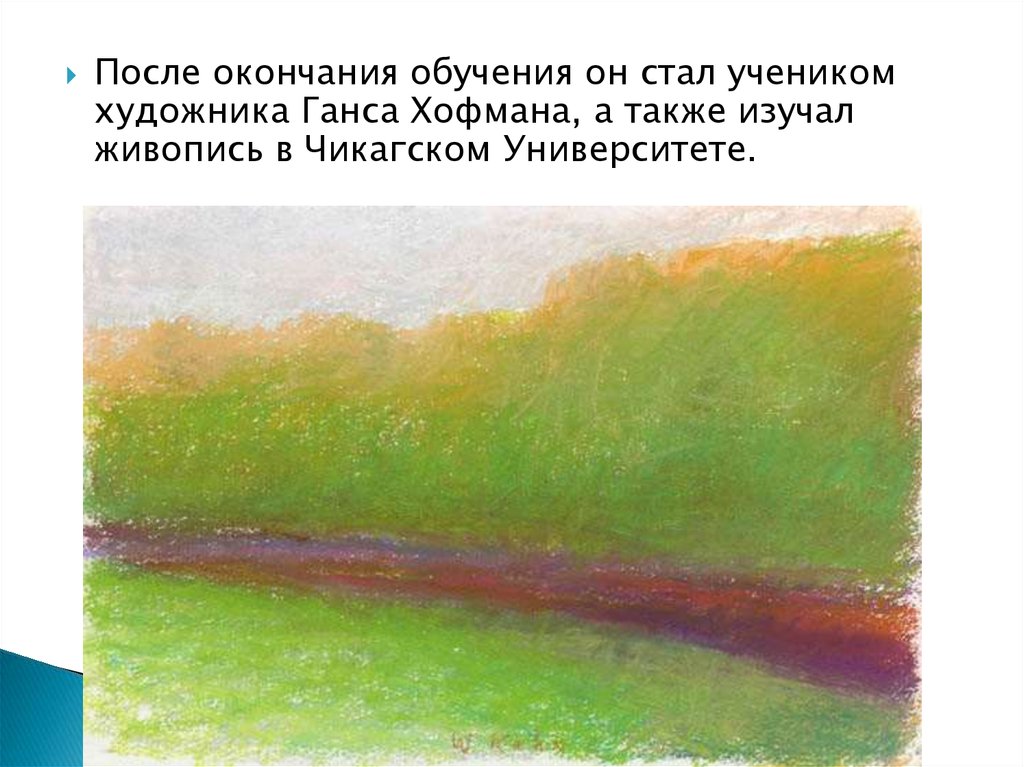 После окончания обучения он стал ученикомхудожника Ганса Хофмана, а также изучал