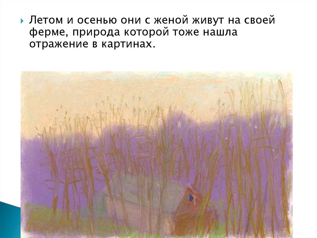 Летом и осенью они с женой живут на своейферме, природа которой тоже нашла