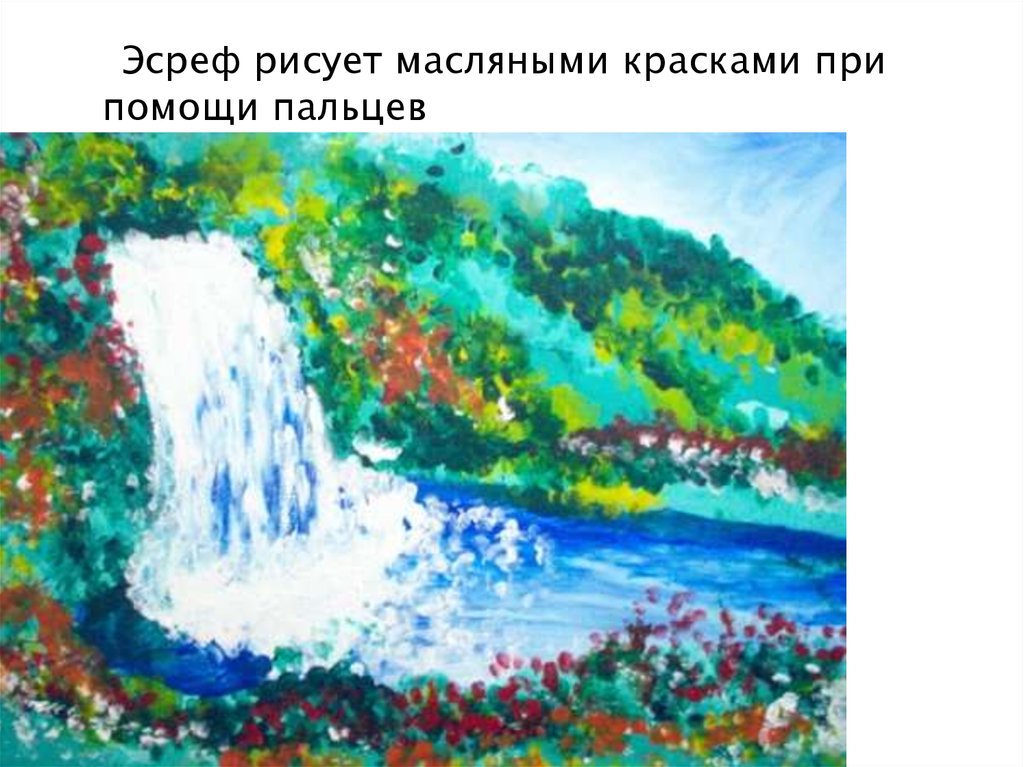 Эсреф рисует масляными красками припомощи пальцев