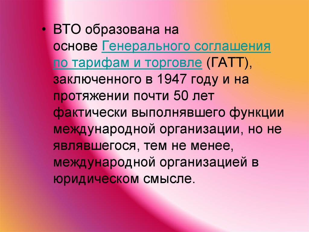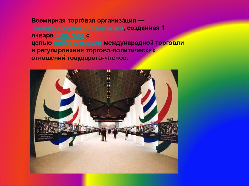 Всеми́рная торго́вая организа́ция —международная организация, созданная 1