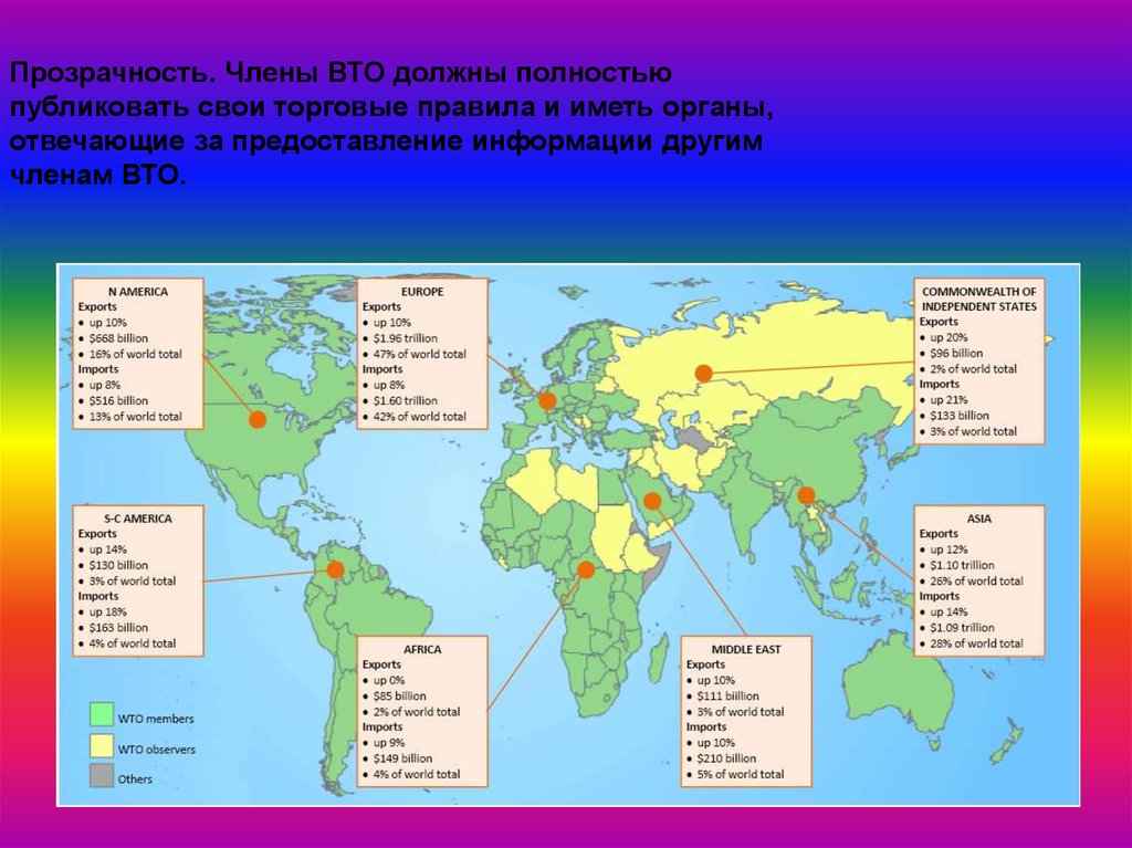 Прозрачность. Члены ВТО должны полностьюпубликовать свои торговые правила и иметь органы,