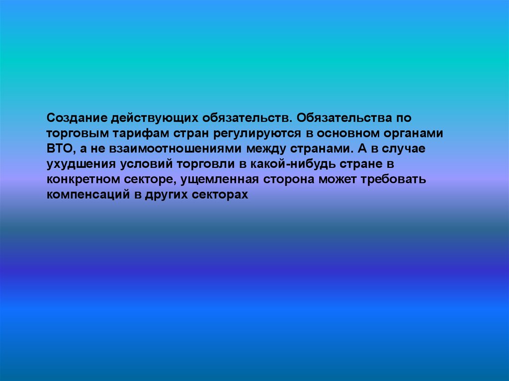 Создание действующих обязательств. Обязательства поторговым тарифам стран регулируются в основном органами