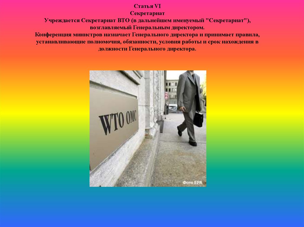 Учреждается Секретариат ВТО (в дальнейшем именуемый "Секретариат"),