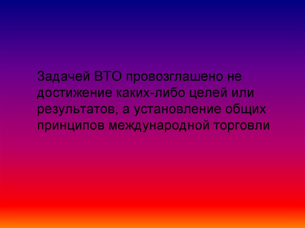 Задачей ВТО провозглашено недостижение каких-либо целей или