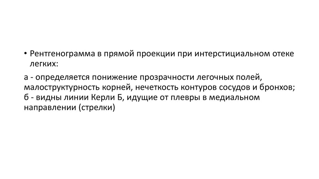 б - видны линии Керли Б, идущие от плевры в медиальном