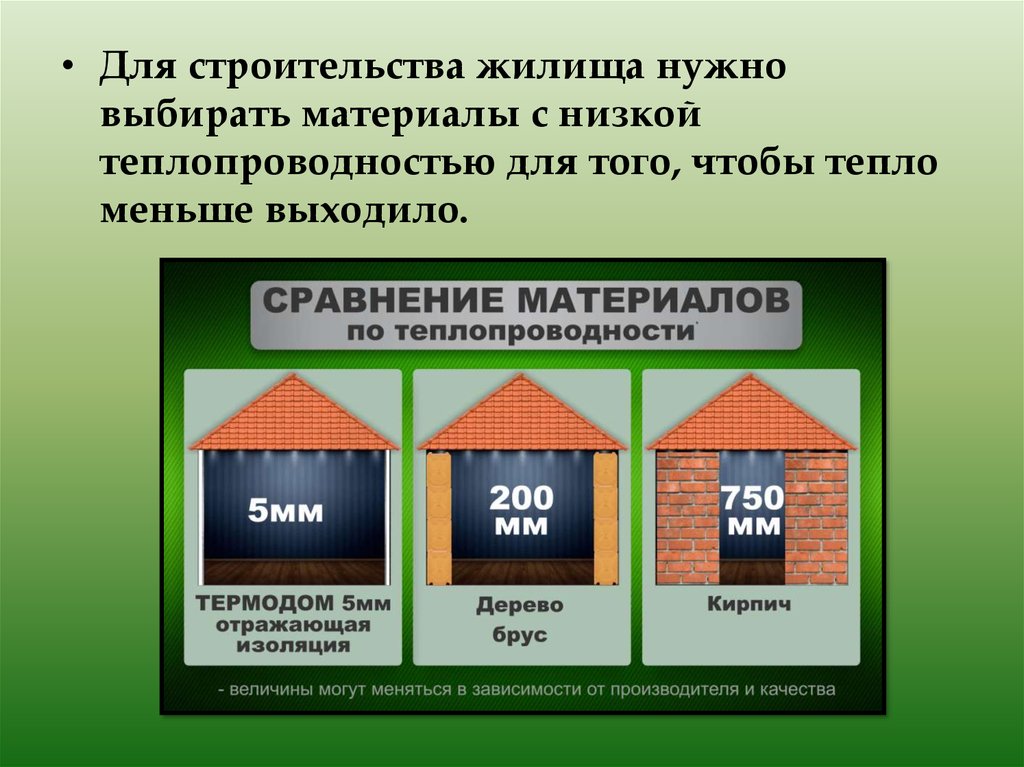 • Для обогревания жилища стоитиспользовать материалы с высокой