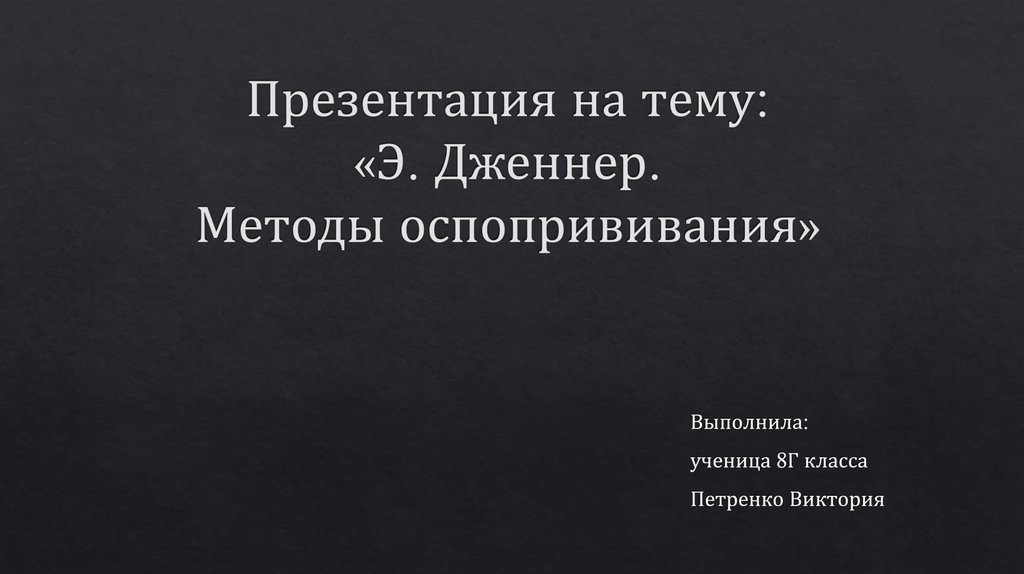 Презентация на тему: «Э. Дженнер. Методы оспопрививания»