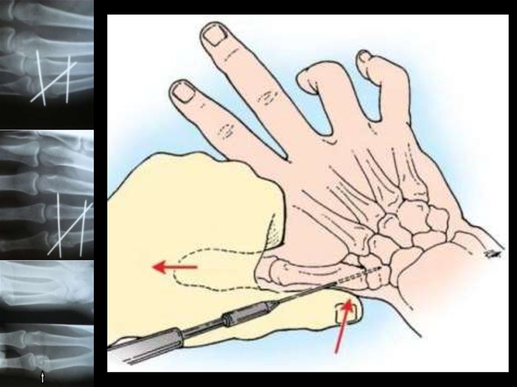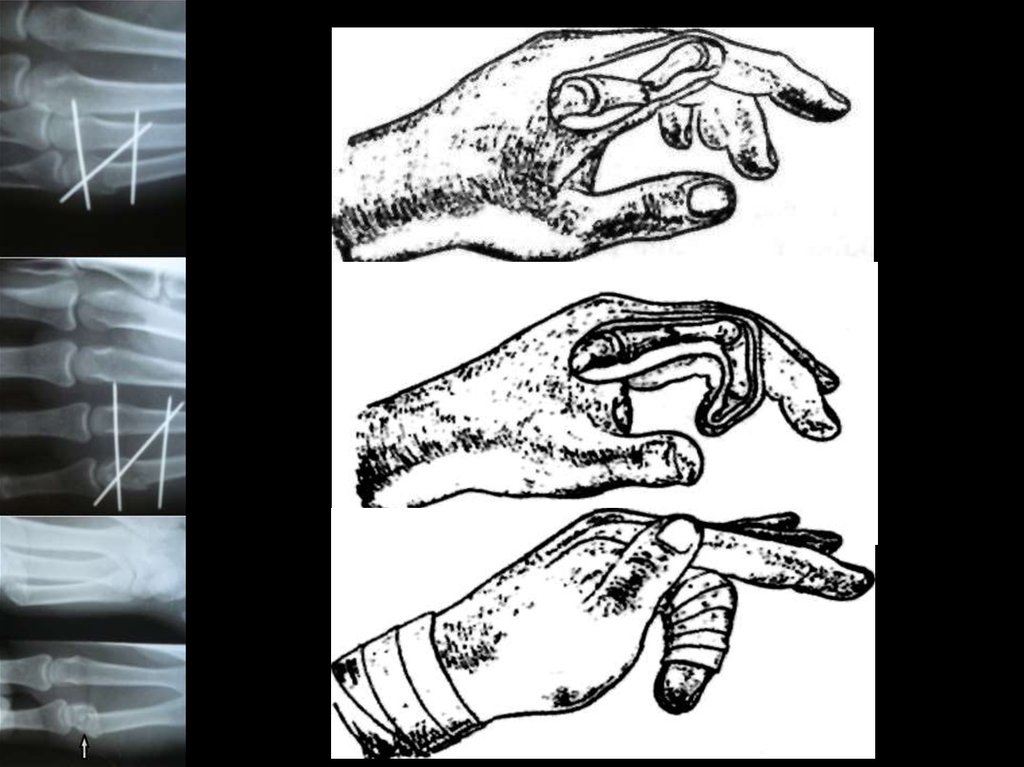12. Лечение переломо-вывихов основания 1 пястной кости стержневым аппаратом.