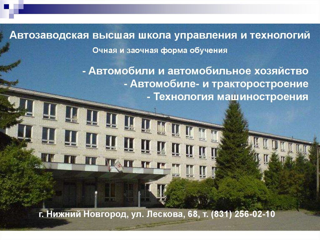 Автозаводская высшая школа управления и технологийОчная и заочная форма обучения