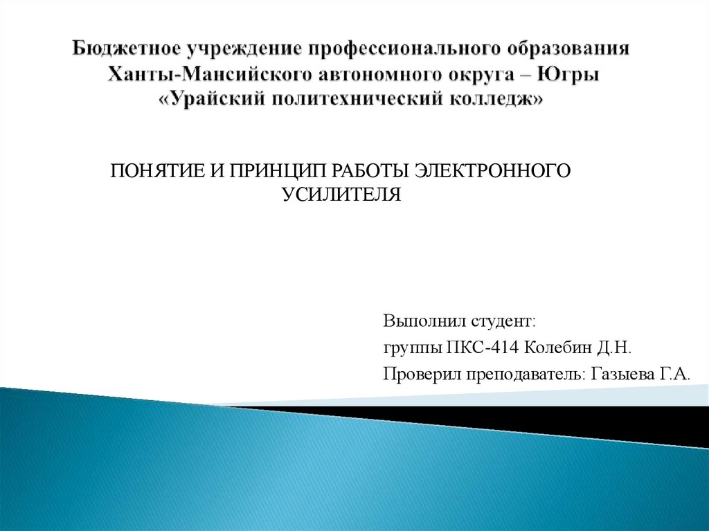 ПОНЯТИЕ И ПРИНЦИП РАБОТЫ ЭЛЕКТРОННОГОУСИЛИТЕЛЯ