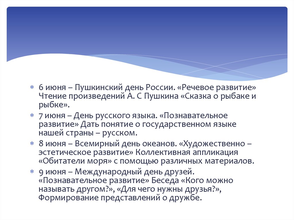 6 июня – Пушкинский день России. «Речевое развитие»Чтение произведений А. С Пушкина «Сказка о рыбаке и