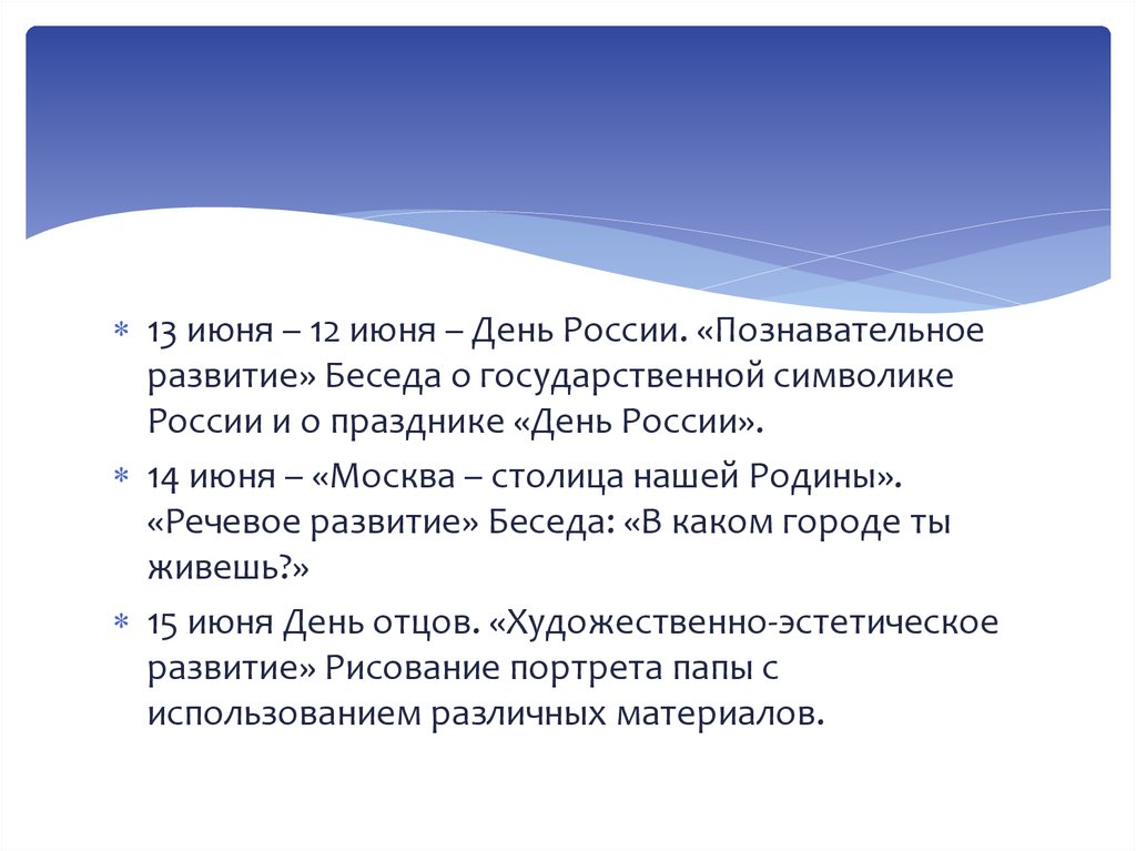 13 июня – 12 июня – День России. «Познавательноеразвитие» Беседа о государственной символике