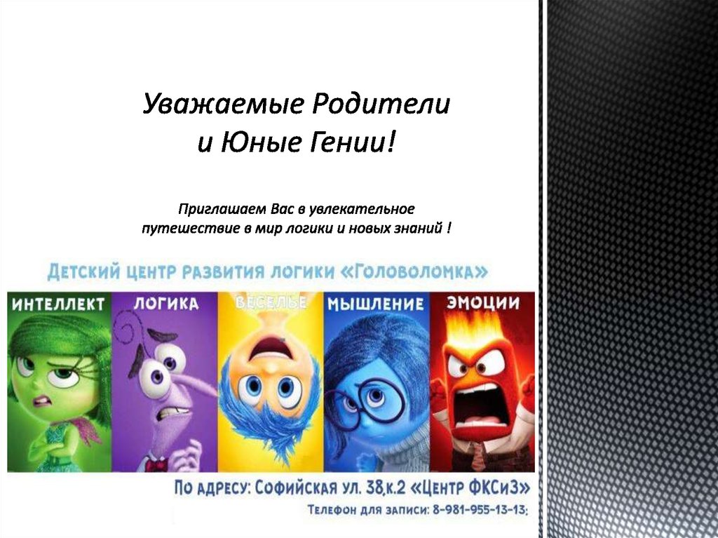 1. Уважаемые Родители и Юные Гении! Приглашаем Вас в увлекательное путешествие в мир логики и новых знаний !