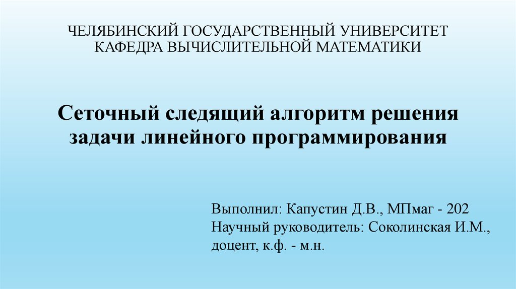 1. ЧЕЛЯБИНСКИЙ ГОСУДАРСТВЕННЫЙ УНИВЕРСИТЕТ КАФЕДРА ВЫЧИСЛИТЕЛЬНОЙ МАТЕМАТИКИ