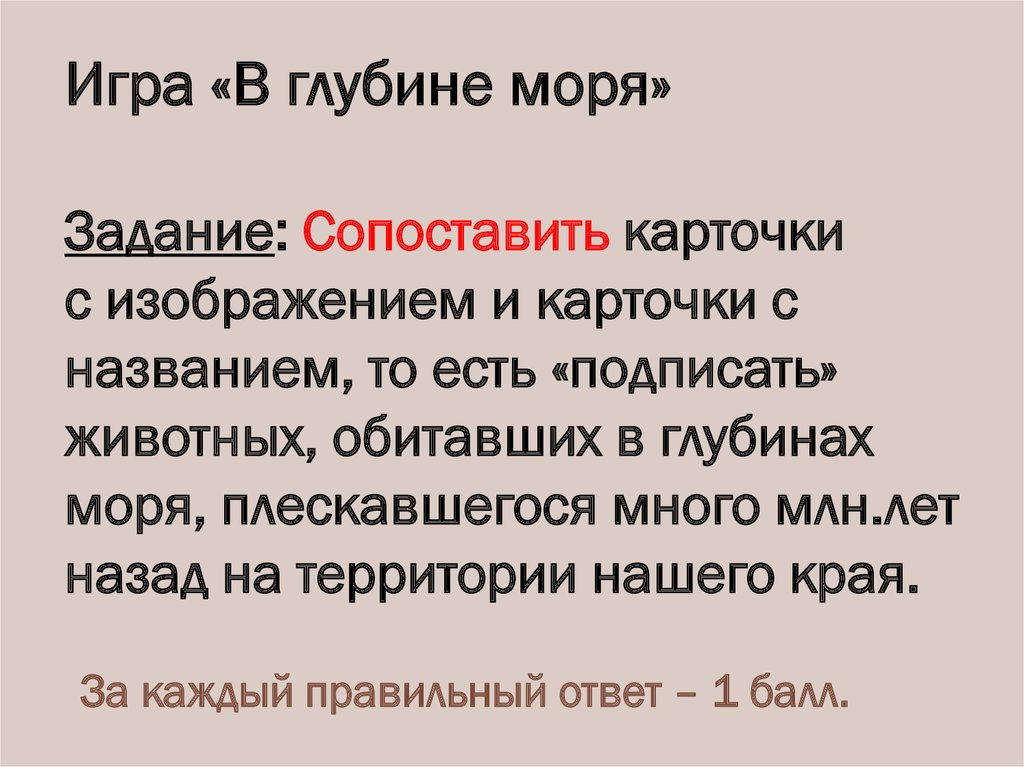 Игра «В глубине моря»Задание: Сопоставить карточки