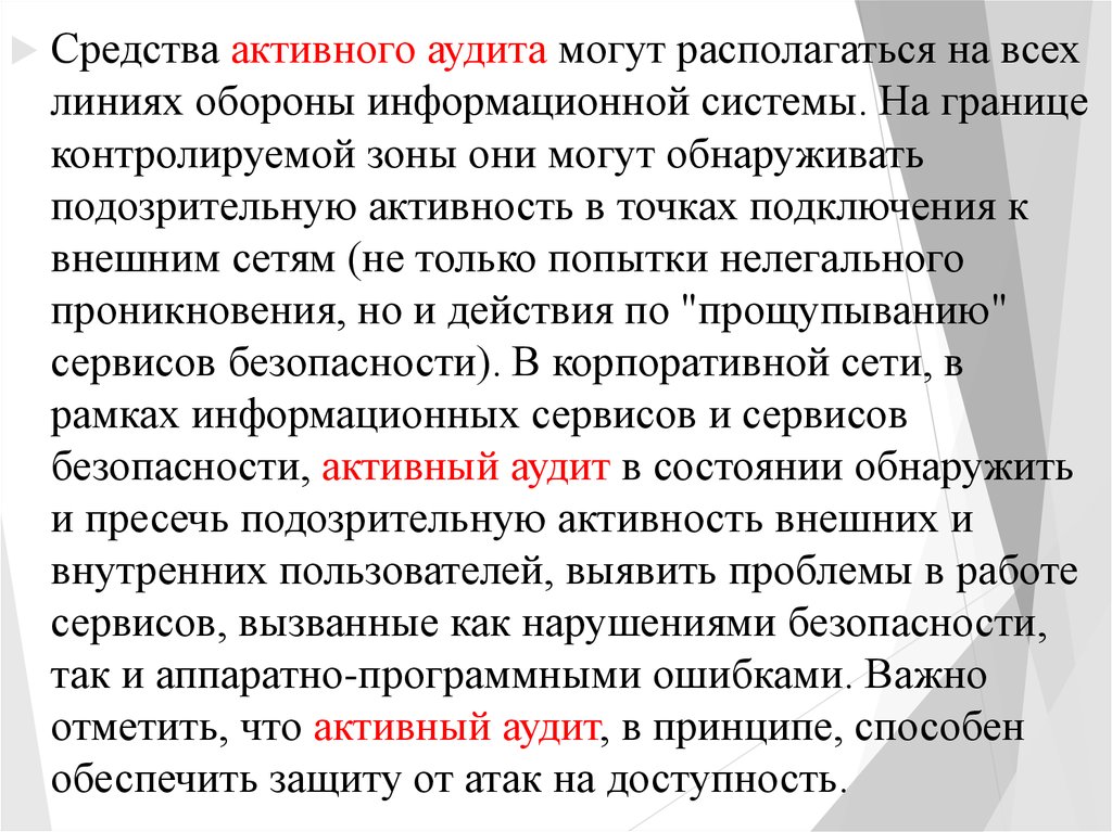отметить, что активный аудит, в принципе, способен