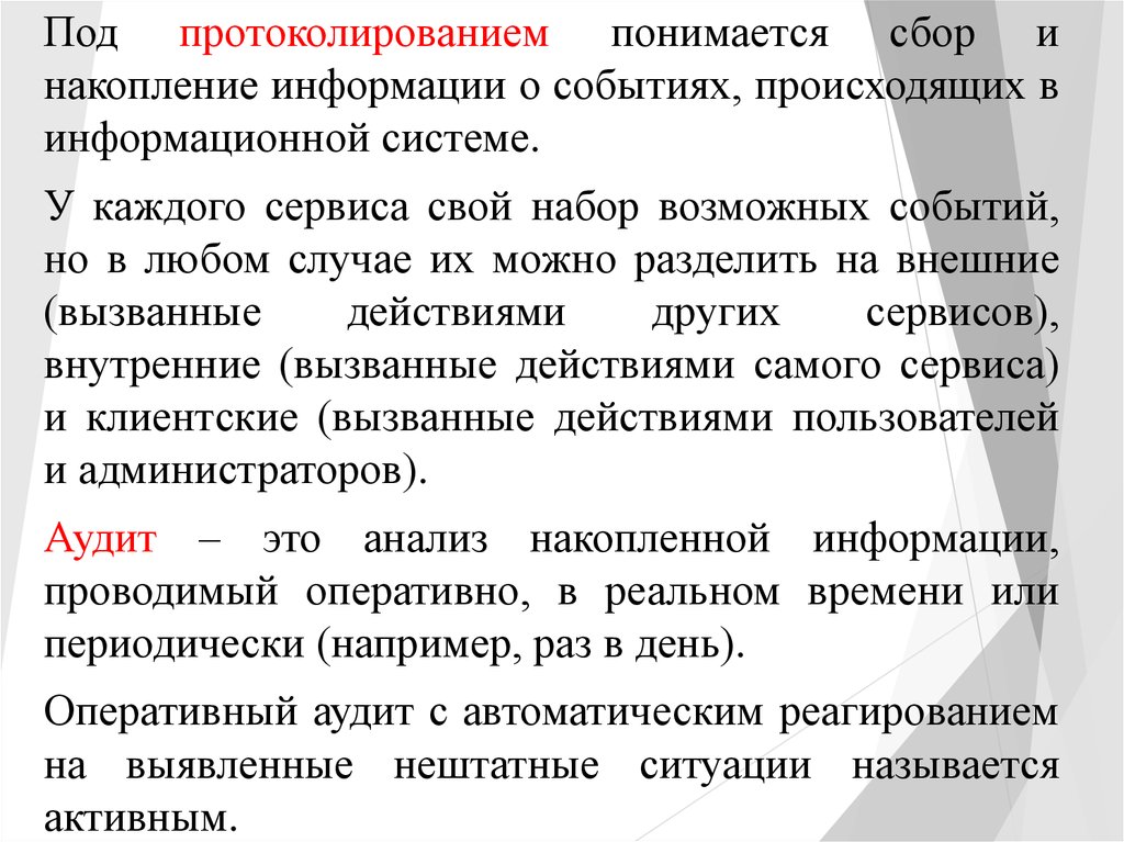 Под протоколированием понимается сбор инакопление информации о событиях, происходящих в