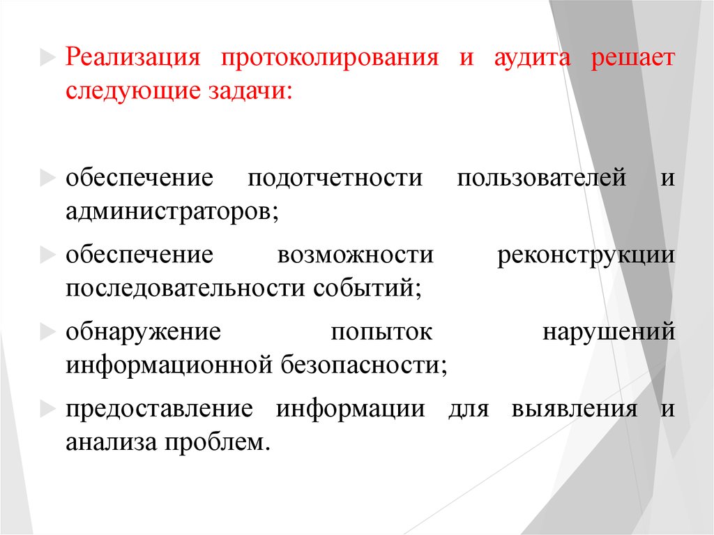 Реализация протоколирования и аудита решаетследующие задачи: