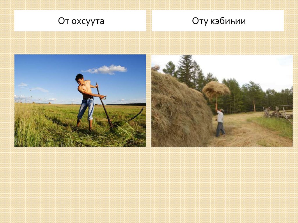 1. От кэбиһээччи – (стоговальщик)2. Бугул тугэҕин харбааччы – (собиратель оставшегося после