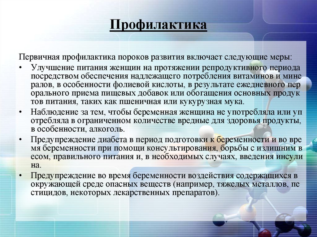 • Некоторые врожденные пороки развития можно предупреждать. Основ