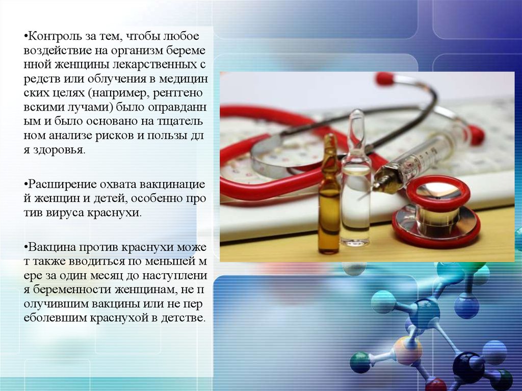 •Контроль за тем, чтобы любоевоздействие на организм береме