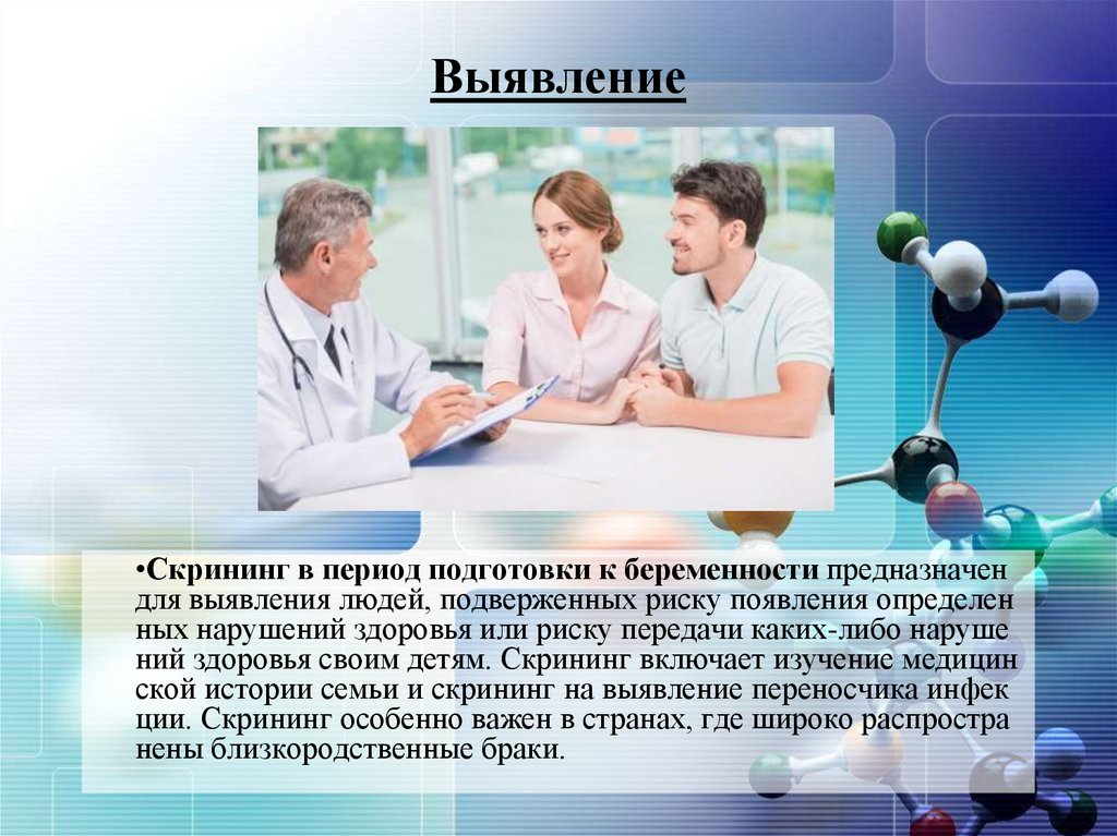 Выявление•Скрининг в период подготовки к беременности предназначен