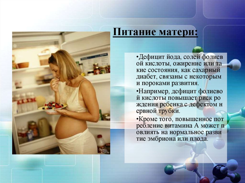 Питание матери:•Дефицит йода, солей фолиев
