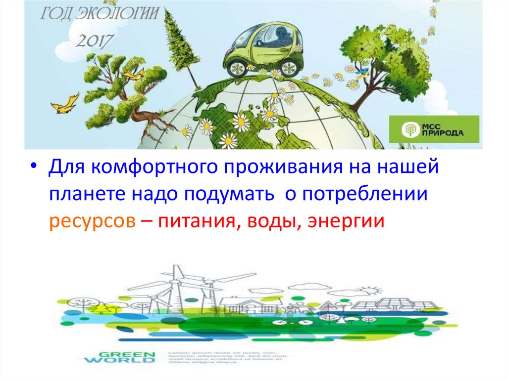 • Для комфортного проживания на нашейпланете надо подумать о потреблении