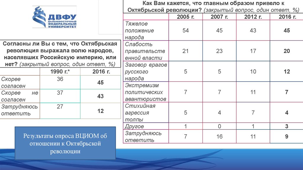 Октябрьской революции? (закрытый вопрос, один ответ, %)