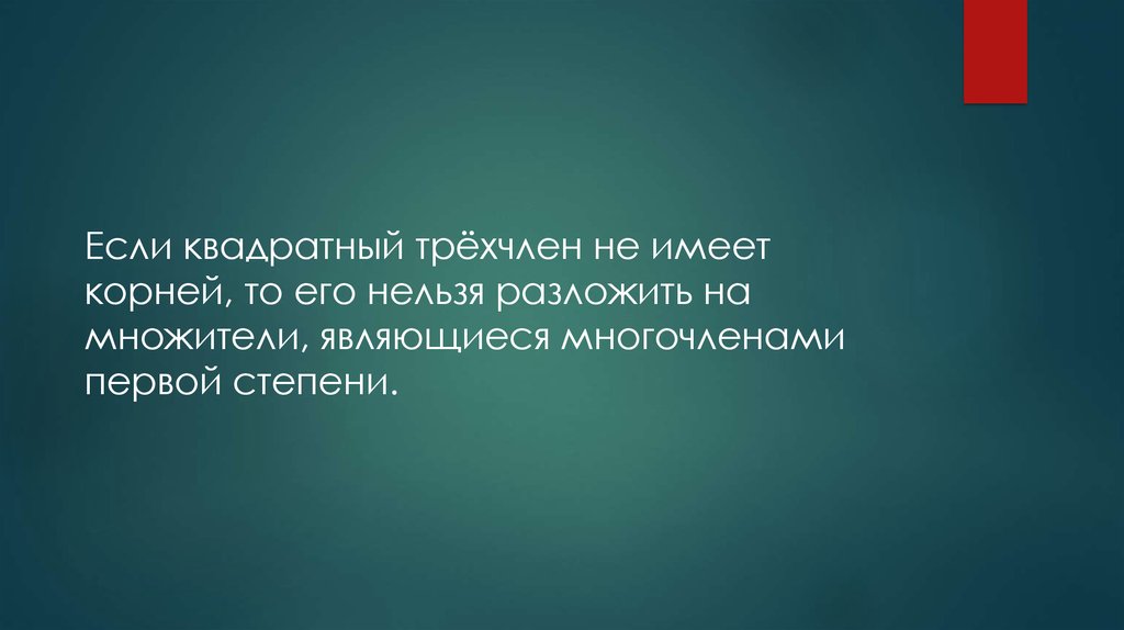 Урок 6 Разложение на множители квадратного трехчлена