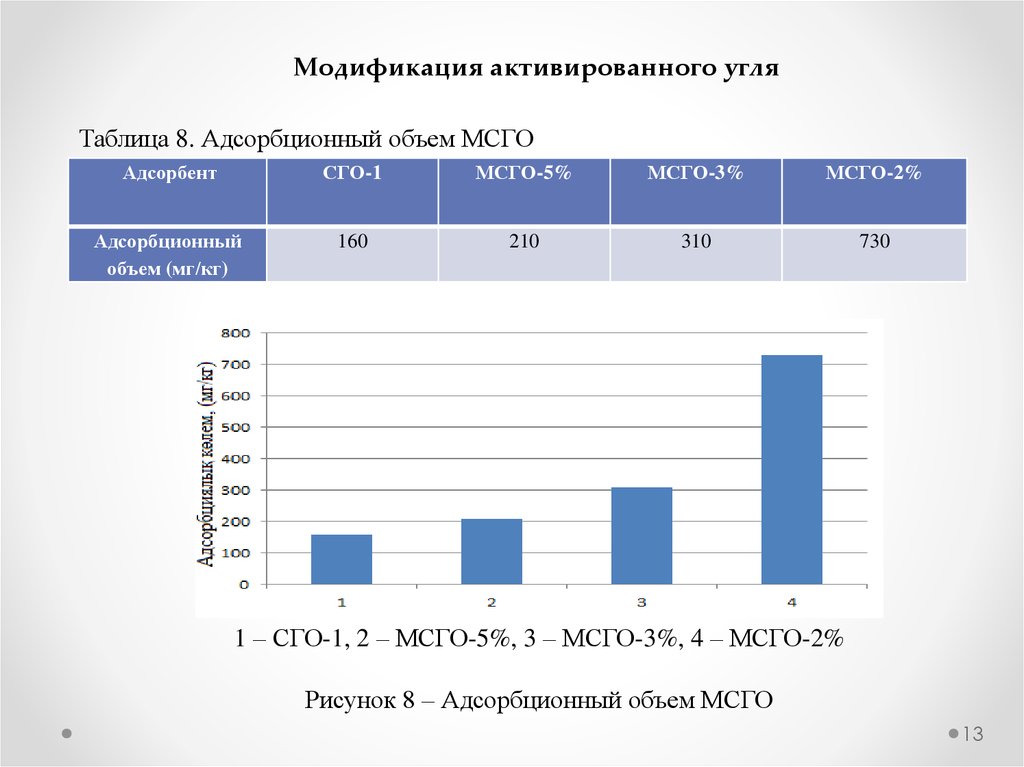 Модификация активированного угляТаблица 8. Адсорбционный объем МСГО