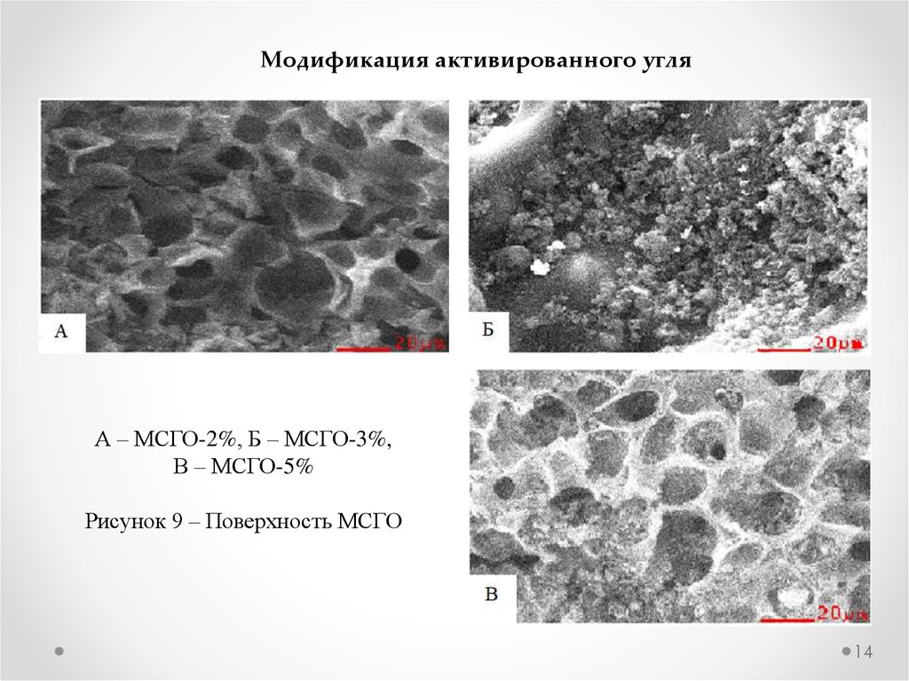 Модификация активированного угляА – МСГО-2%, Б – МСГО-3%,
