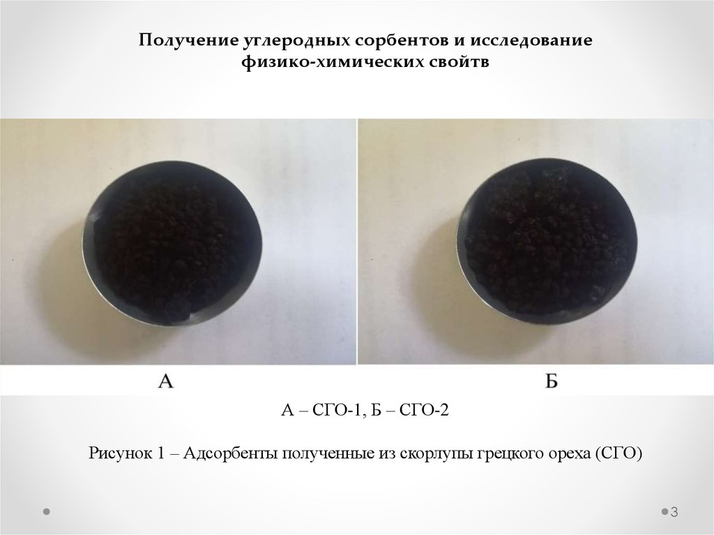 Рисунок 1 – Адсорбенты полученные из скорлупы грецкого ореха (СГО)