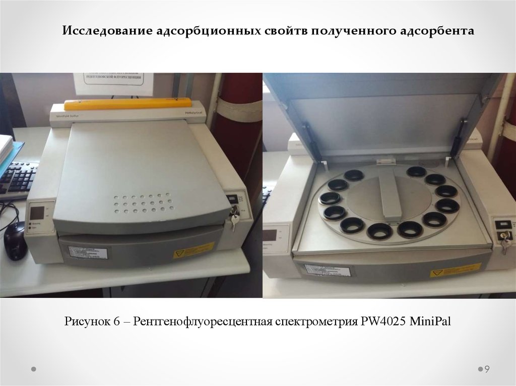 Исследование адсорбционных свойтв полученного адсорбентаРисунок 6 – Рентгенофлуоресцентная спектрометрия PW4025 MiniPal