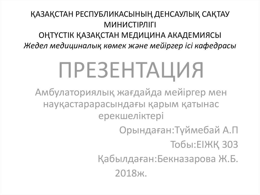1. ҚАЗАҚСТАН РЕСПУБЛИКАСЫНЫҢ ДЕНСАУЛЫҚ САҚТАУ МИНИСТІРЛІГІ ОҢТҮСТІК ҚАЗАҚСТАН МЕДИЦИНА АКАДЕМИЯСЫ Жедел медициналық көмек және