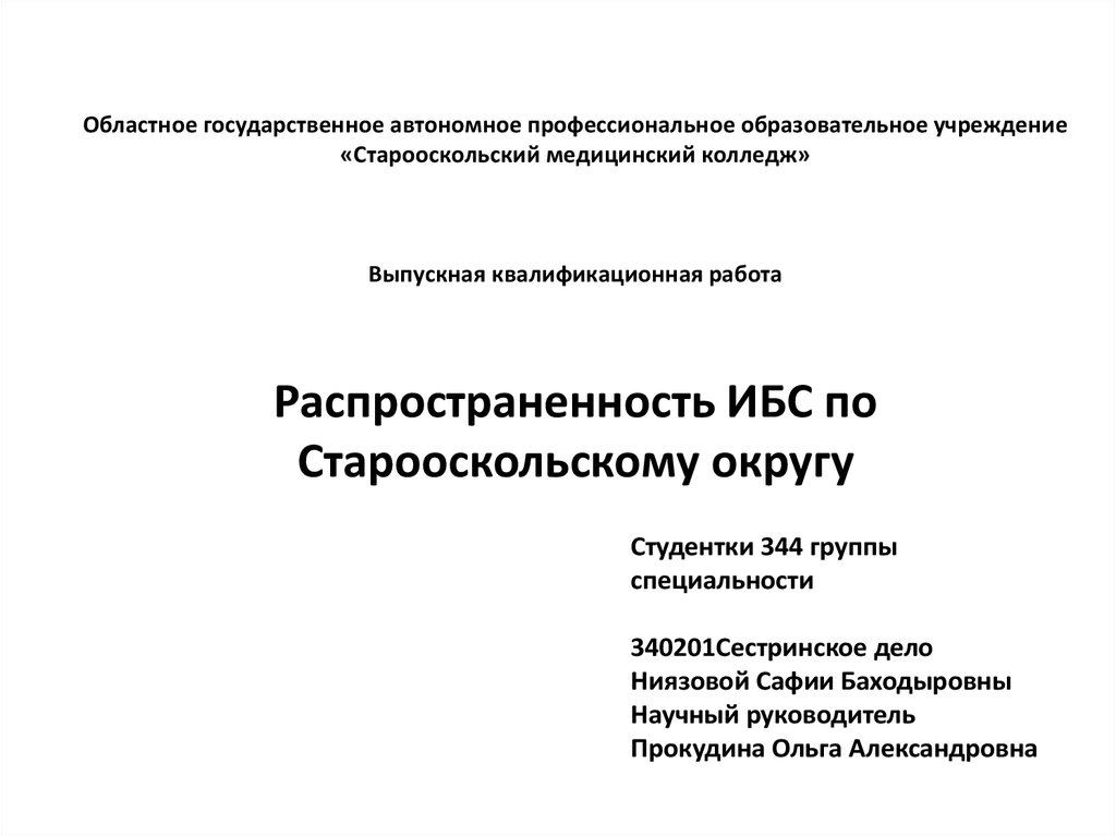 Областное государственное автономное профессиональное образовательное учреждение«Старооскольский медицинский колледж»