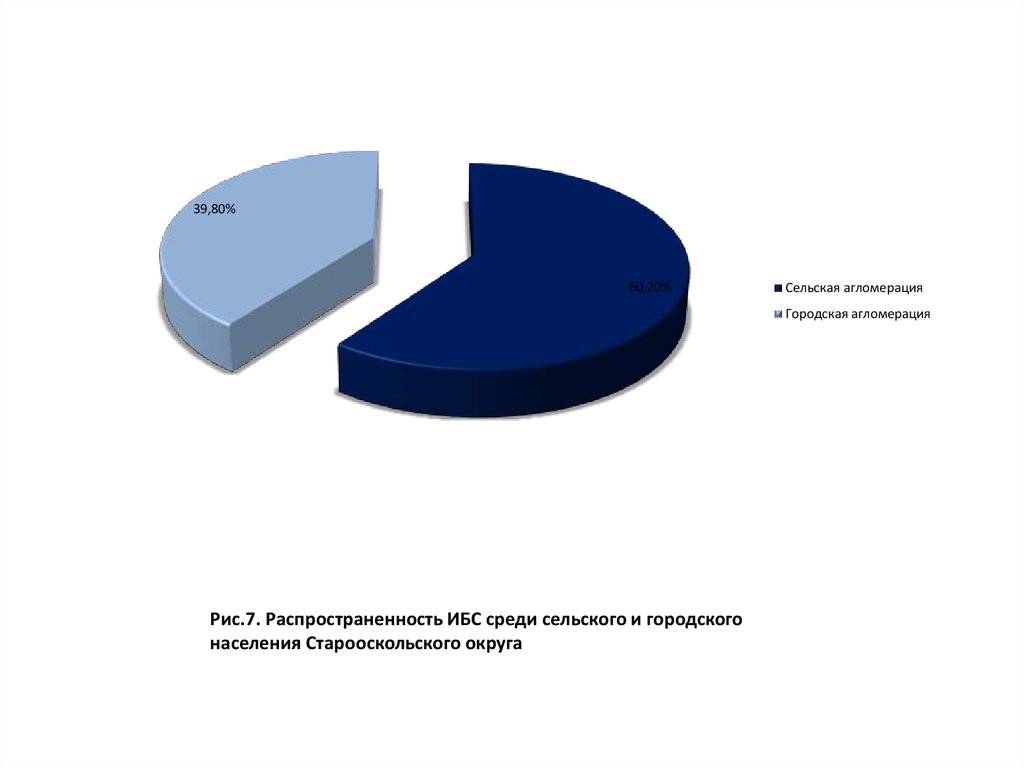 Рис.7. Распространенность ИБС среди сельского и городского