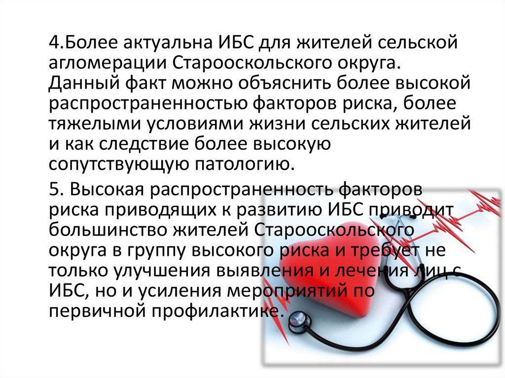 4.Более актуальна ИБС для жителей сельскойагломерации Старооскольского округа.