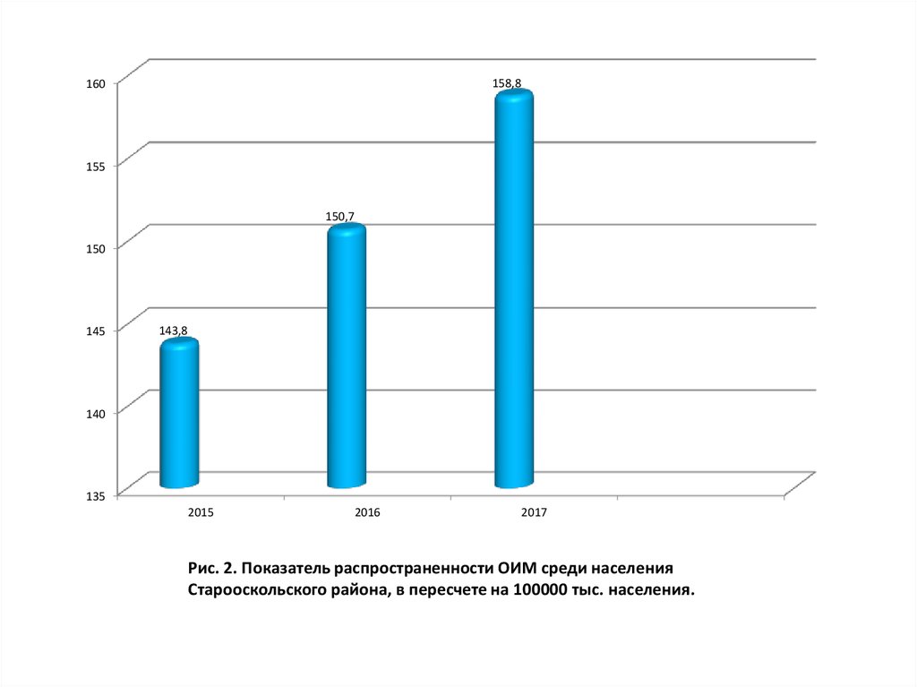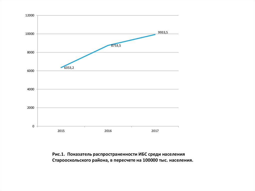 • 1.В период с 2015 по 2017 год по Старооскольскому округунаблюдается тенденция к увеличению распространенности