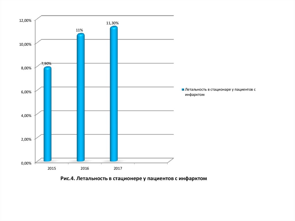 Рис.4. Летальность в стационере у пациентов с инфарктом