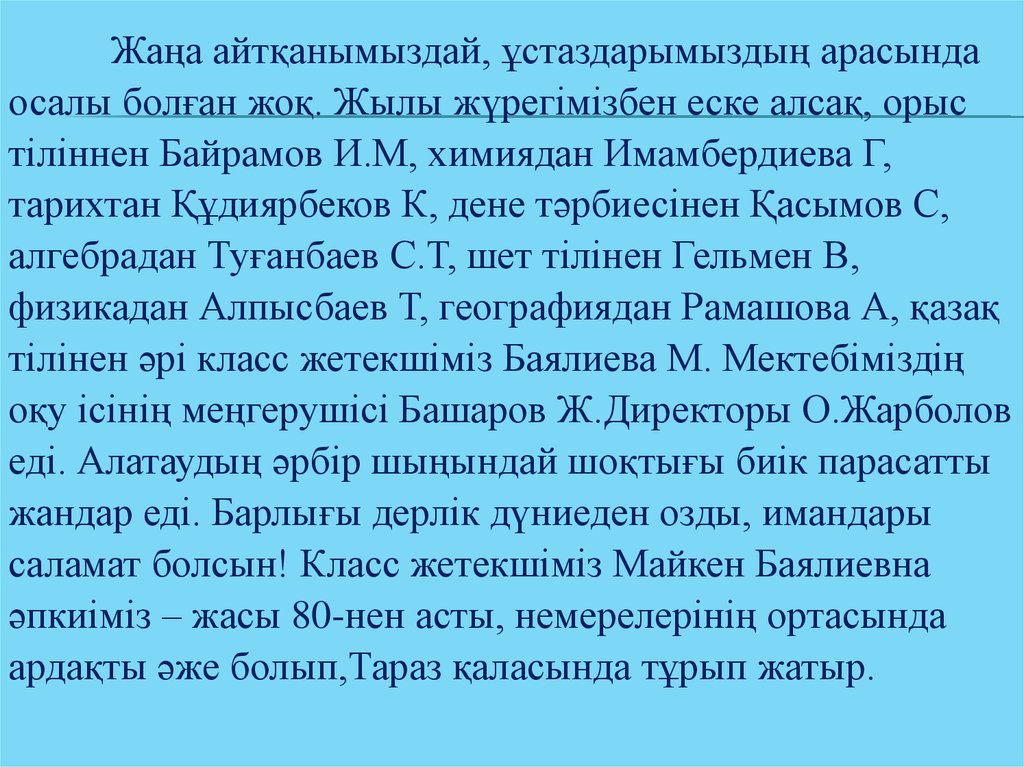 саламат болсын! Класс жетекшіміз Майкен Баялиевна