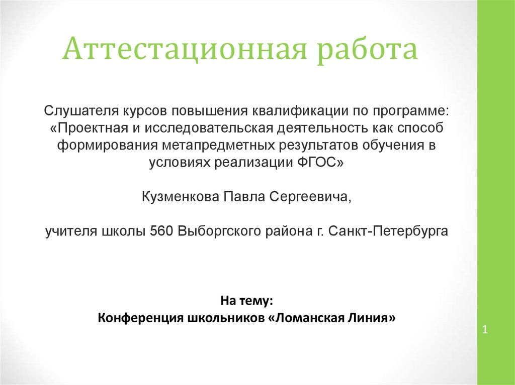 Аттестационная работа. Конференция школьников «Ломанская Линия»