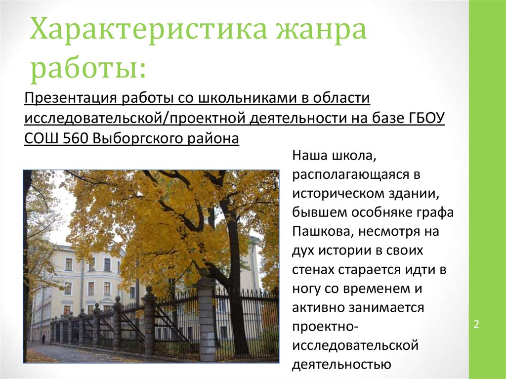 Характеристика жанраработы: