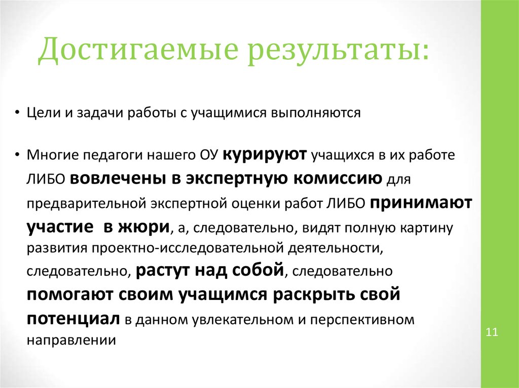 Достигаемые результаты:• Цели и задачи работы с учащимися выполняются