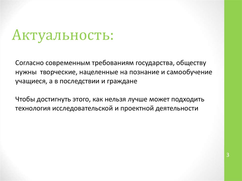 Актуальность:Согласно современным требованиям государства, обществу